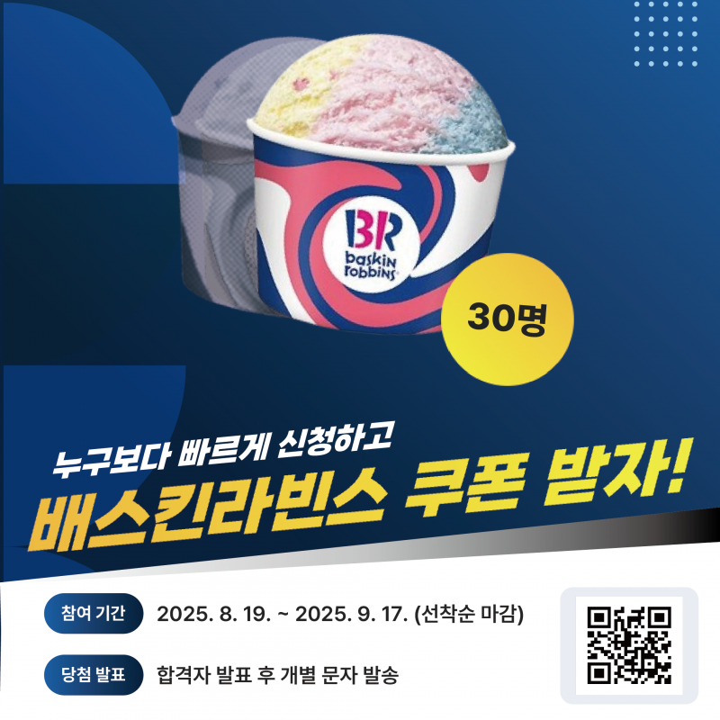 ๋ˆ„๊ตฌ๋ณด๋‹ค ๋น ๋ฅด๊ฒŒ ์‹ ์ฒญํ•œ 30๋ช…์—๊ฒŒ๋Š” ๋ฐฐ์Šคํ‚จ๋ผ๋นˆ์Šค ํŒŒ์ธํŠธ ์ฟ ํฐ์„ ์„ ๋ฌผ๋กœ ๋“œ๋ ค์š”(์„ ์ฐฉ์ˆœ ๋งˆ๊ฐ)