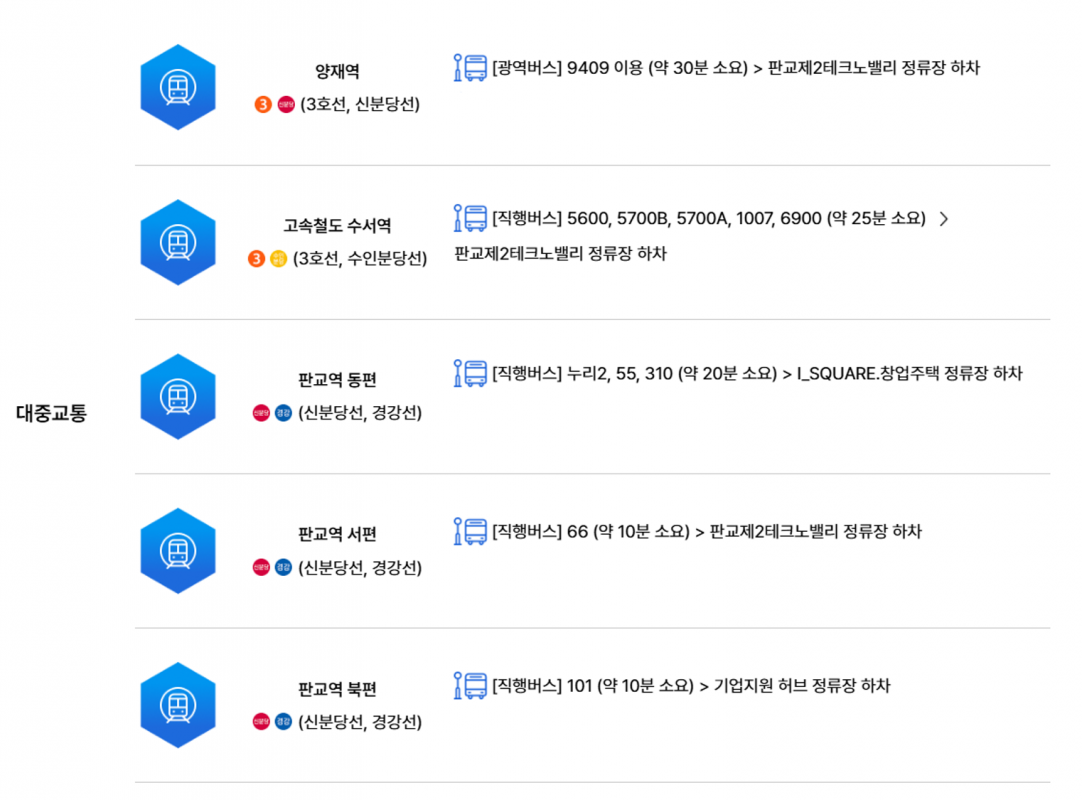 주소 : 경기도 성남시 수정구 대왕판교로 815 판교제2테크노밸리 기업지원허브 1층